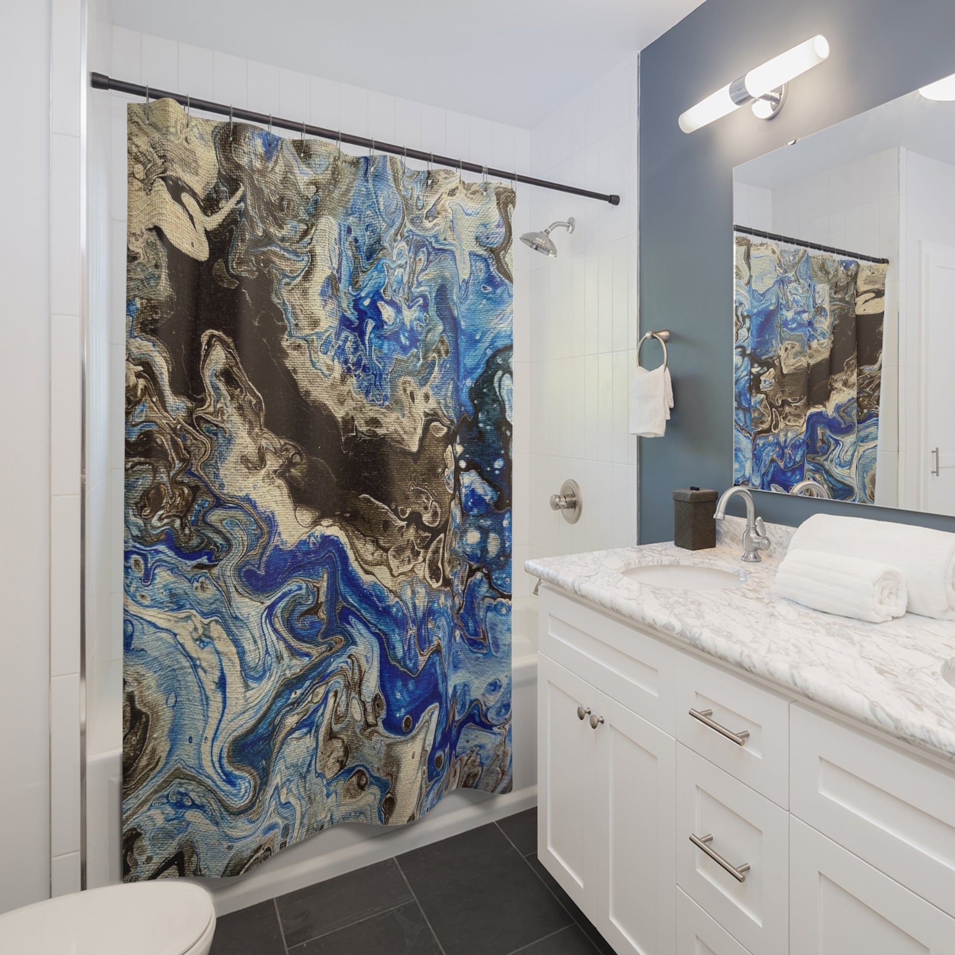This shower curtain is here to add an original touch to any bathroom with your designs. Made with highly durable polyester, this curtain stays like new for a long time to come and is a perfect printing area for your art. Please note that while polyester offers adequate protection against water, a liner might be necessary for full waterproofness.