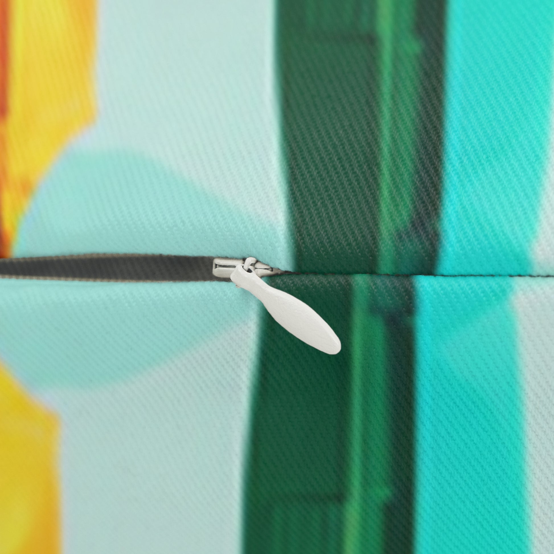 Add this beautiful lumbar pillow to your home decor pieces today. It comes with a stuffed pillow. The casing is made of a spun polyester fabric that is inherently mildew and water-resistant. It has a hidden beige zipper to maintain a finished and stylish look.