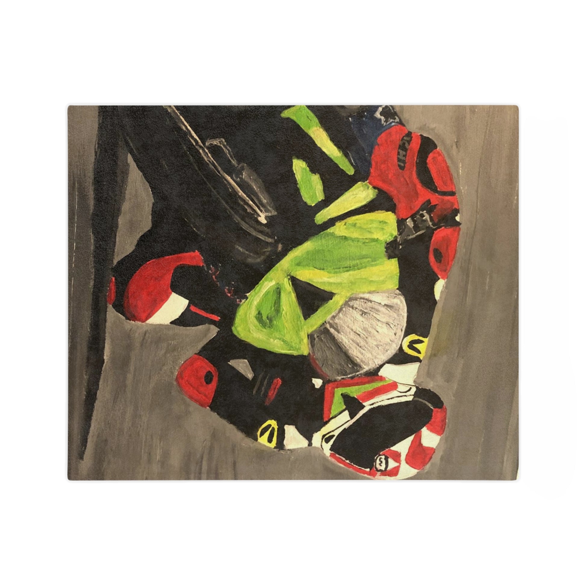 Embrace the thrill of speed with this dynamic blanket featuring a captivating graphic showcasing a fearless man racing his vibrant motorcycle around the track. Whether you're a seasoned rider or simply crave adventure, this blanket is the perfect statement piece for the daredevil in all of us. Unleash your inner speedster and make a fearless style statement with the Daredevil Racer blanket.