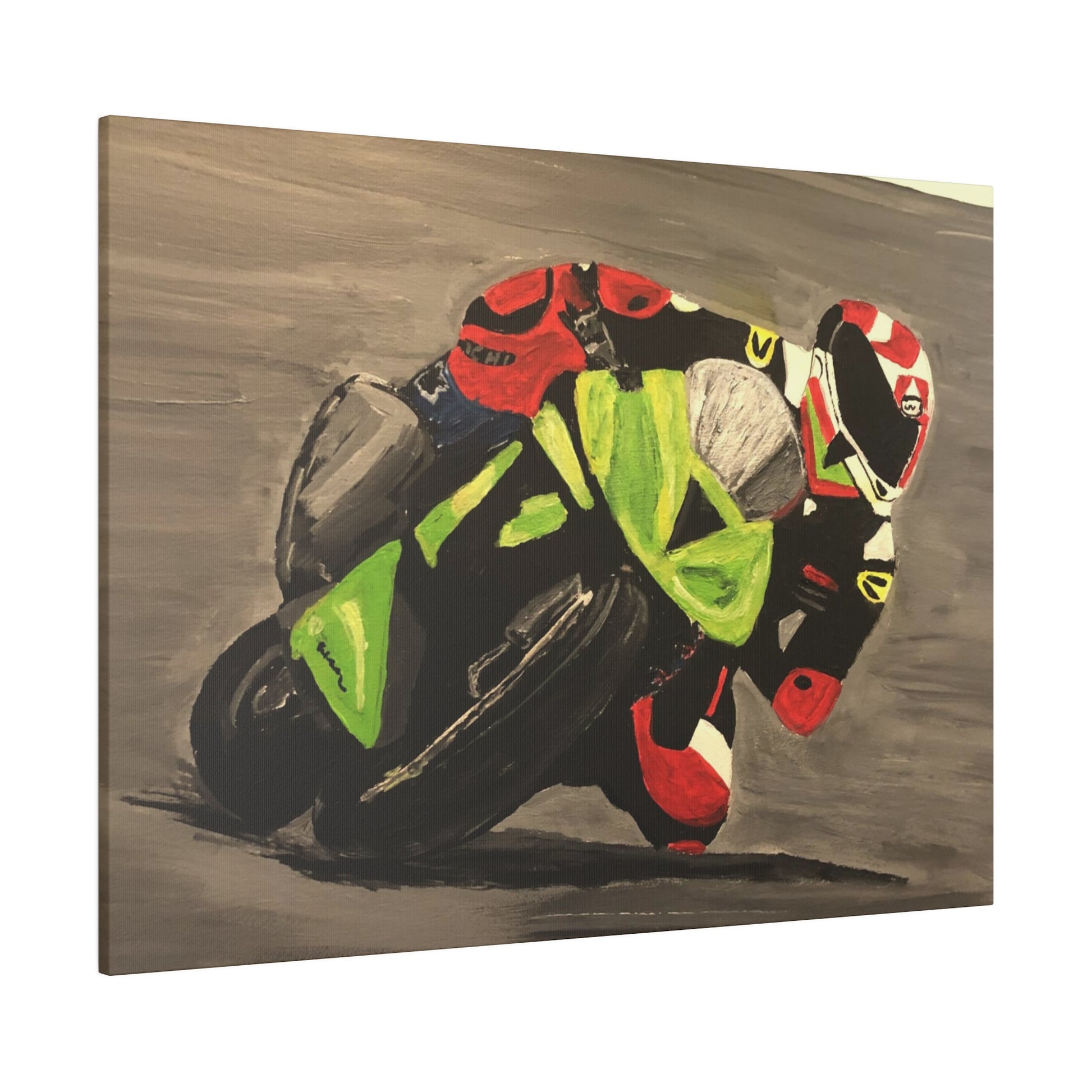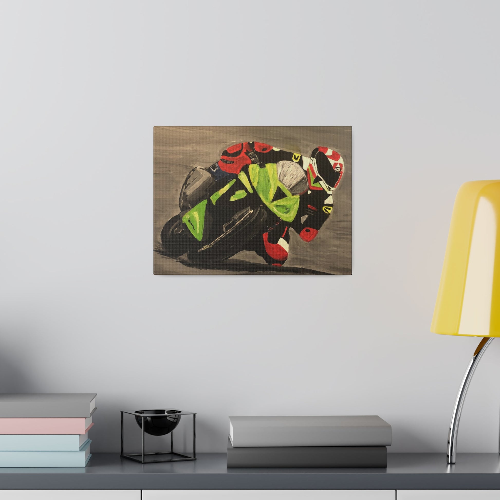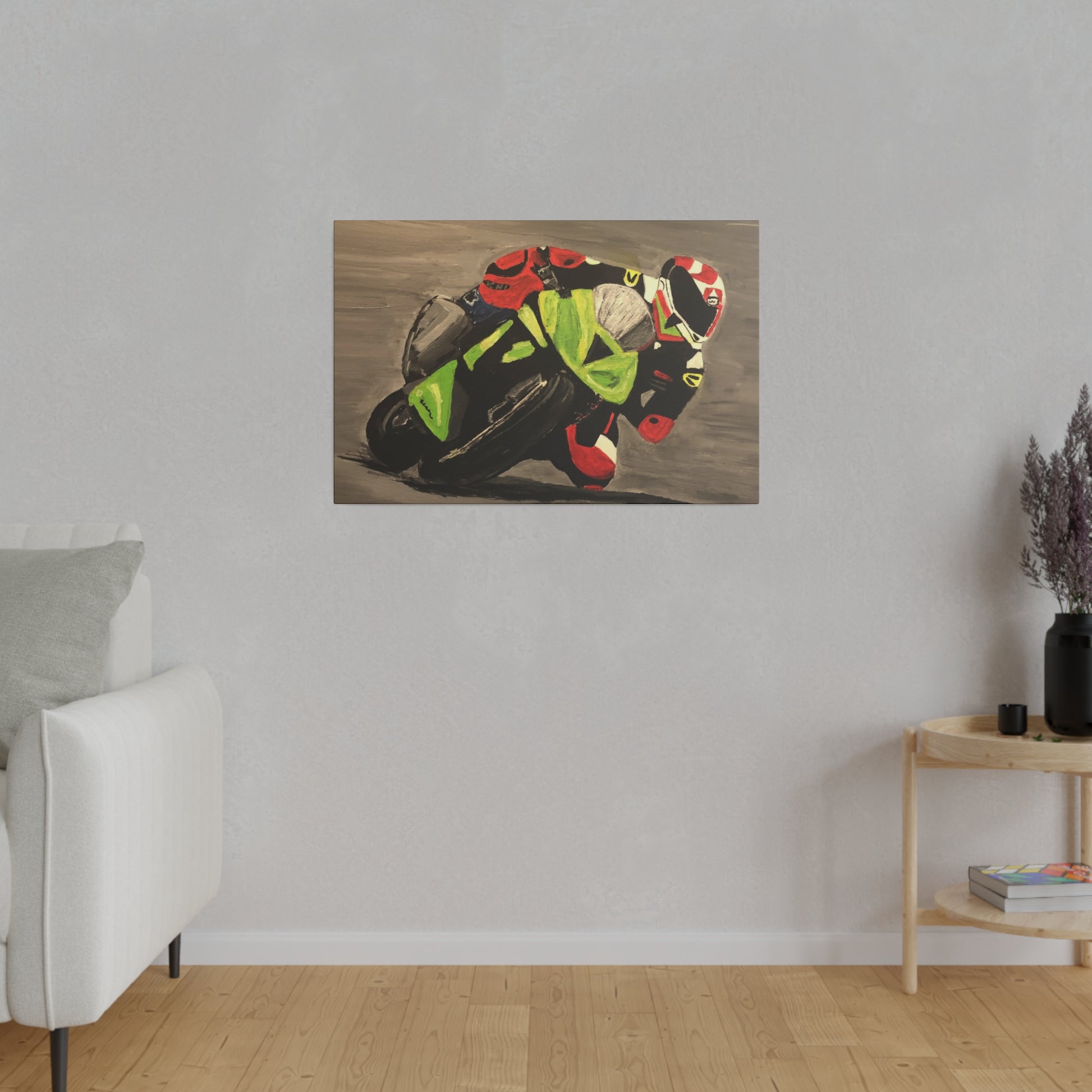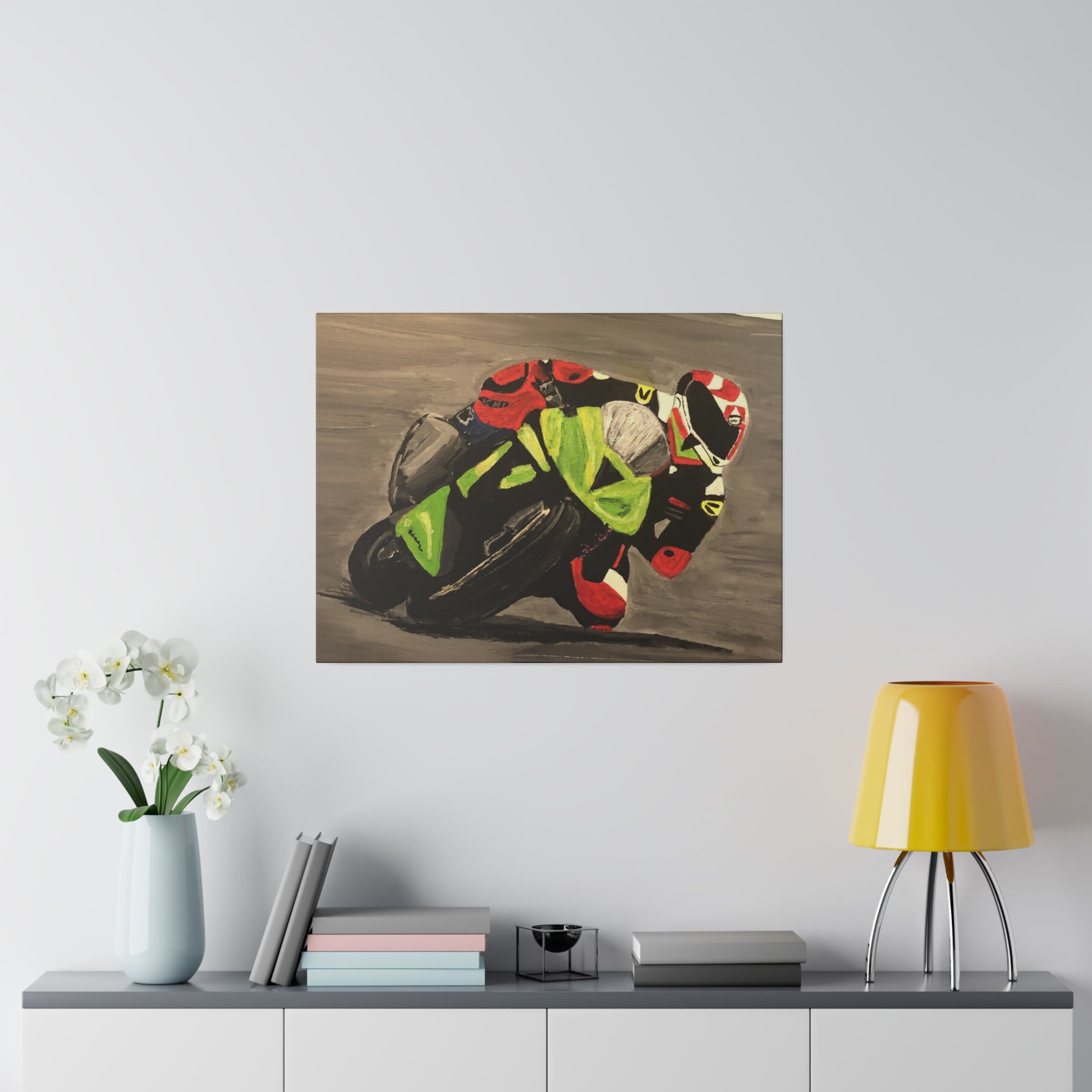 Embrace the thrill of speed with this dynamic art, featuring a captivating graphic showcasing a fearless man racing his vibrant motorcycle around the track. Whether you're a seasoned rider or simply crave adventure, this wall art is the perfect for the daredevil in all of us.