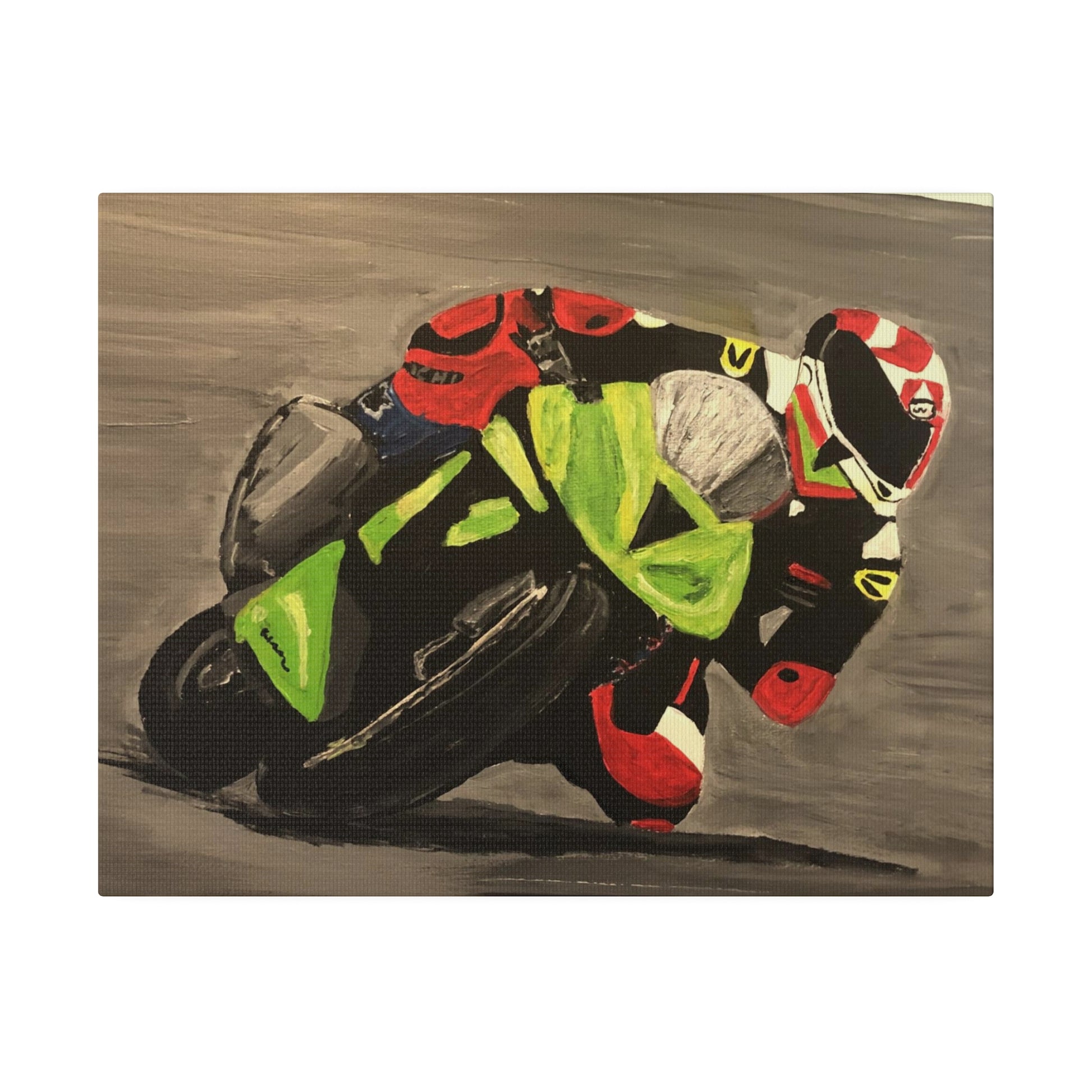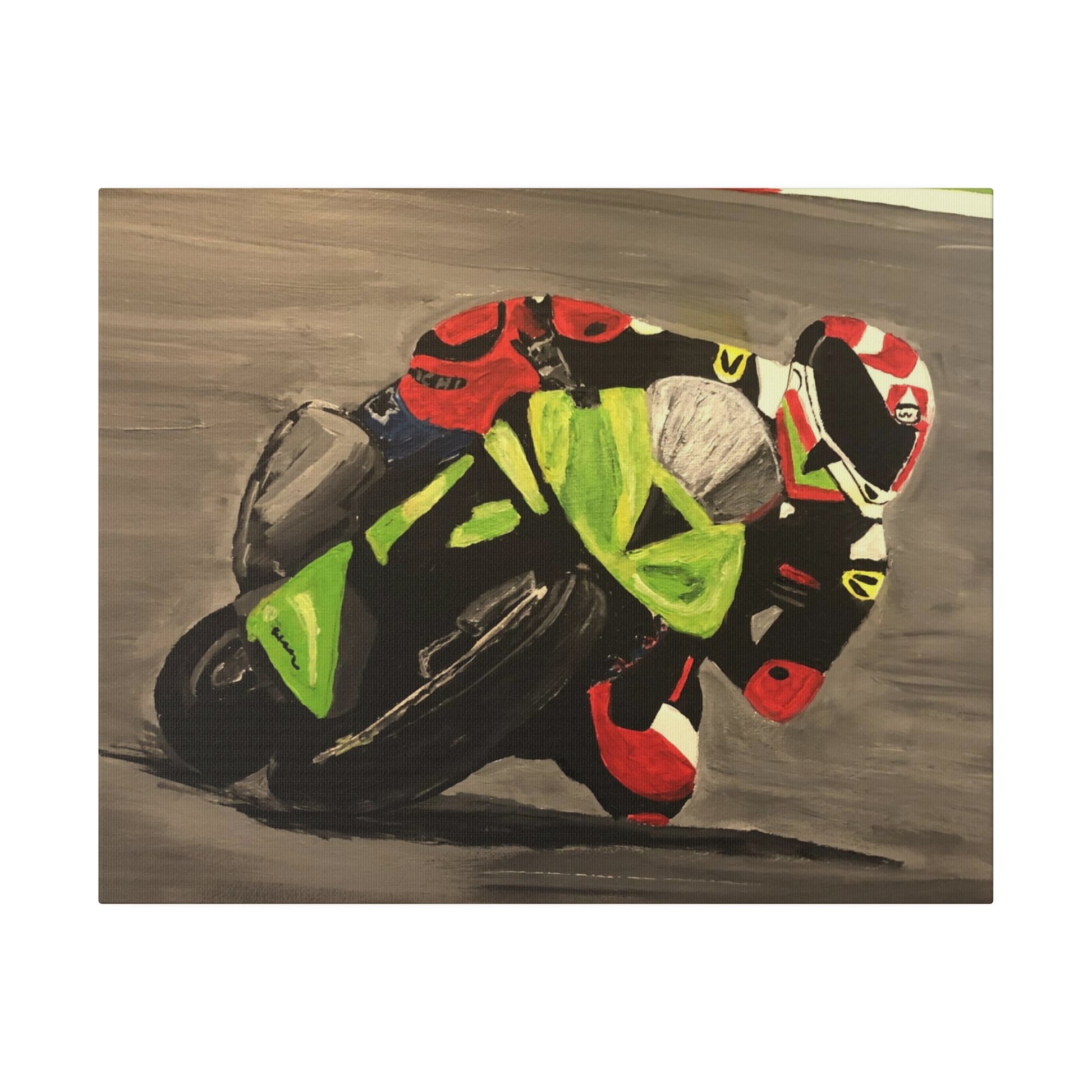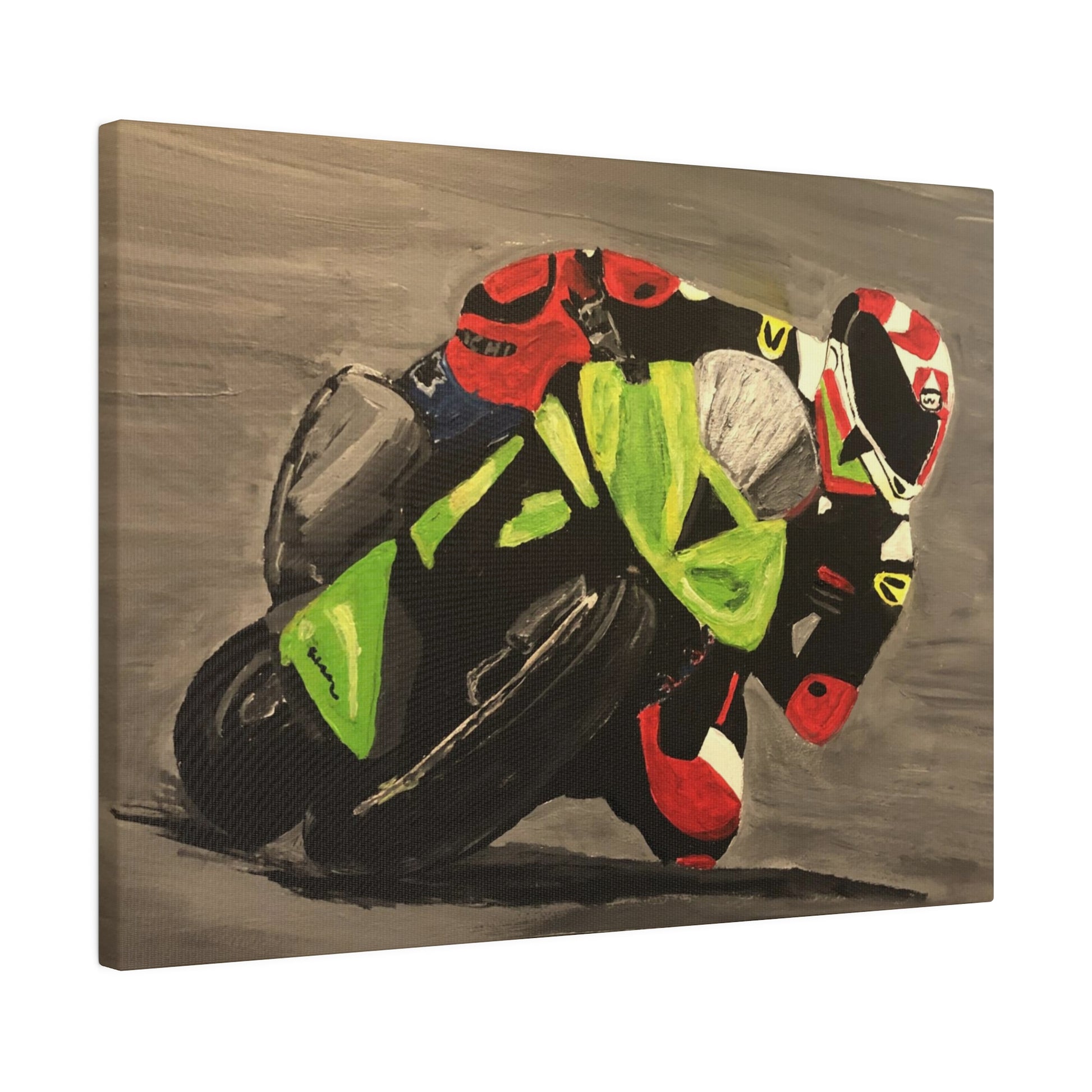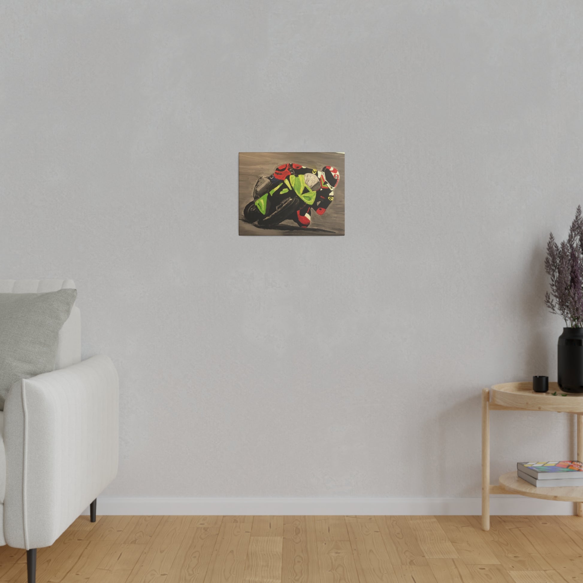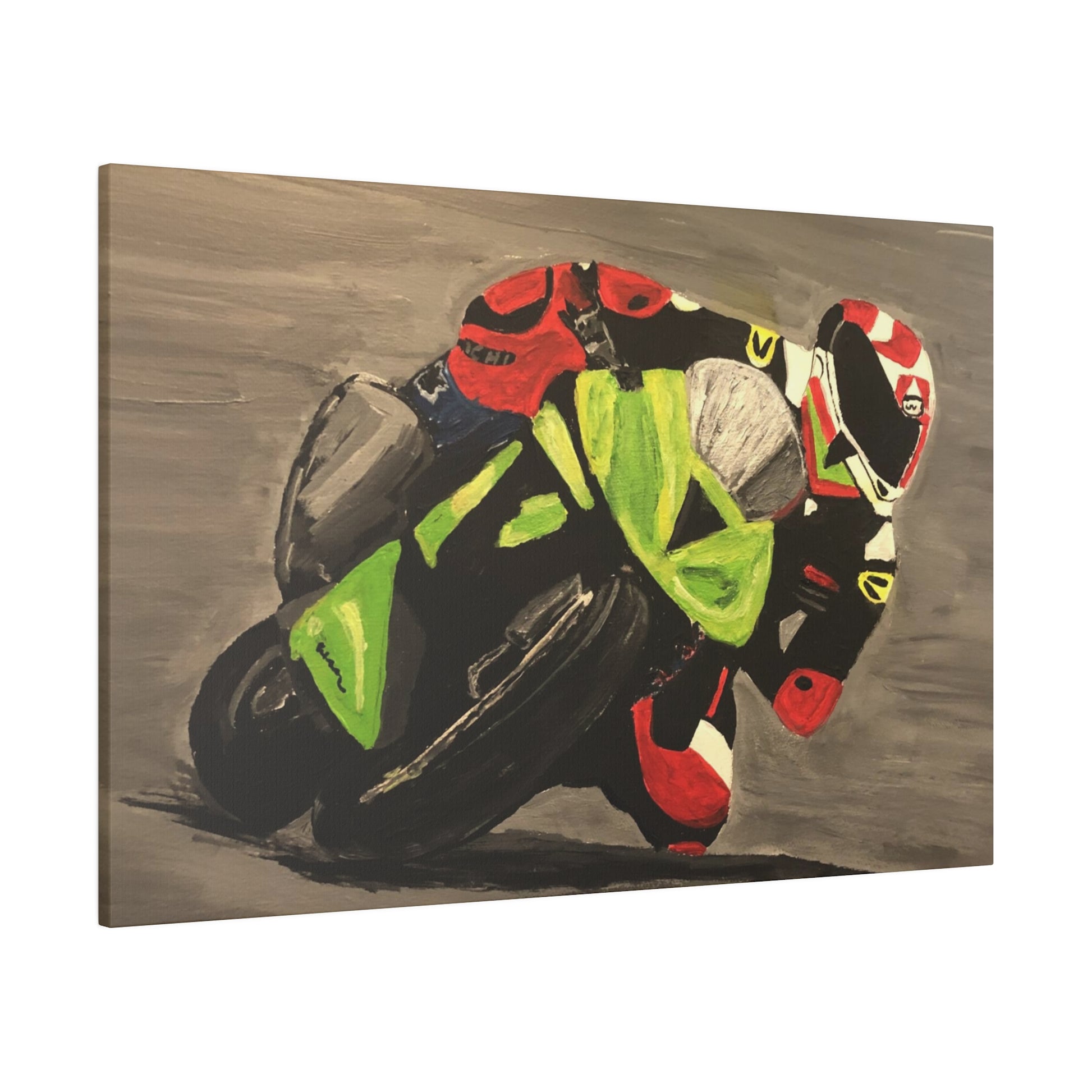 Embrace the thrill of speed with this dynamic art, featuring a captivating graphic showcasing a fearless man racing his vibrant motorcycle around the track. Whether you're a seasoned rider or simply crave adventure, this wall art is the perfect for the daredevil in all of us.