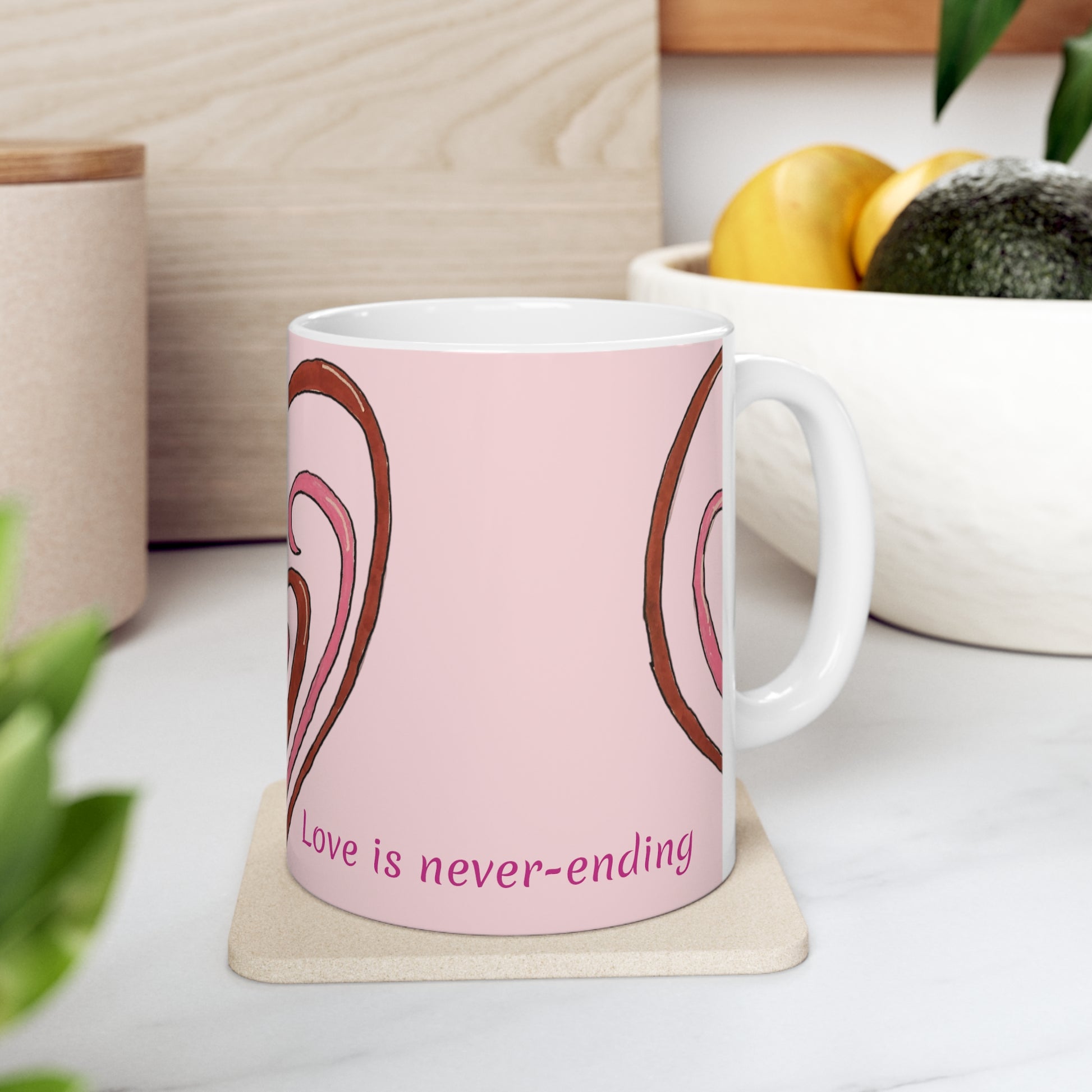 Hearts Intertwined shows love is never-ending. Warm-up with a nice cuppa out of this customized ceramic coffee mug.