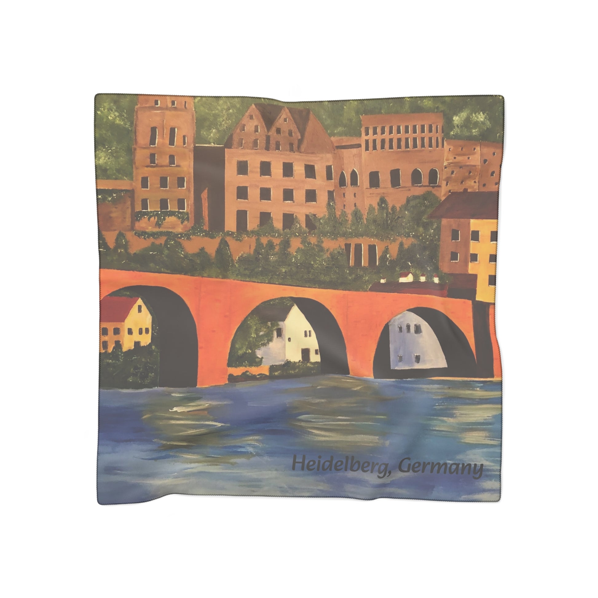 The Karl-Theodor Bridge in Heidelberg, Germany, spans the picturesque Neckar River, with the magnificent Schloss Castle serving as a breathtaking backdrop. This vibrant bridge captures the essence of the serene town of Heidelberg, making it a perfect artistic representation of the area.