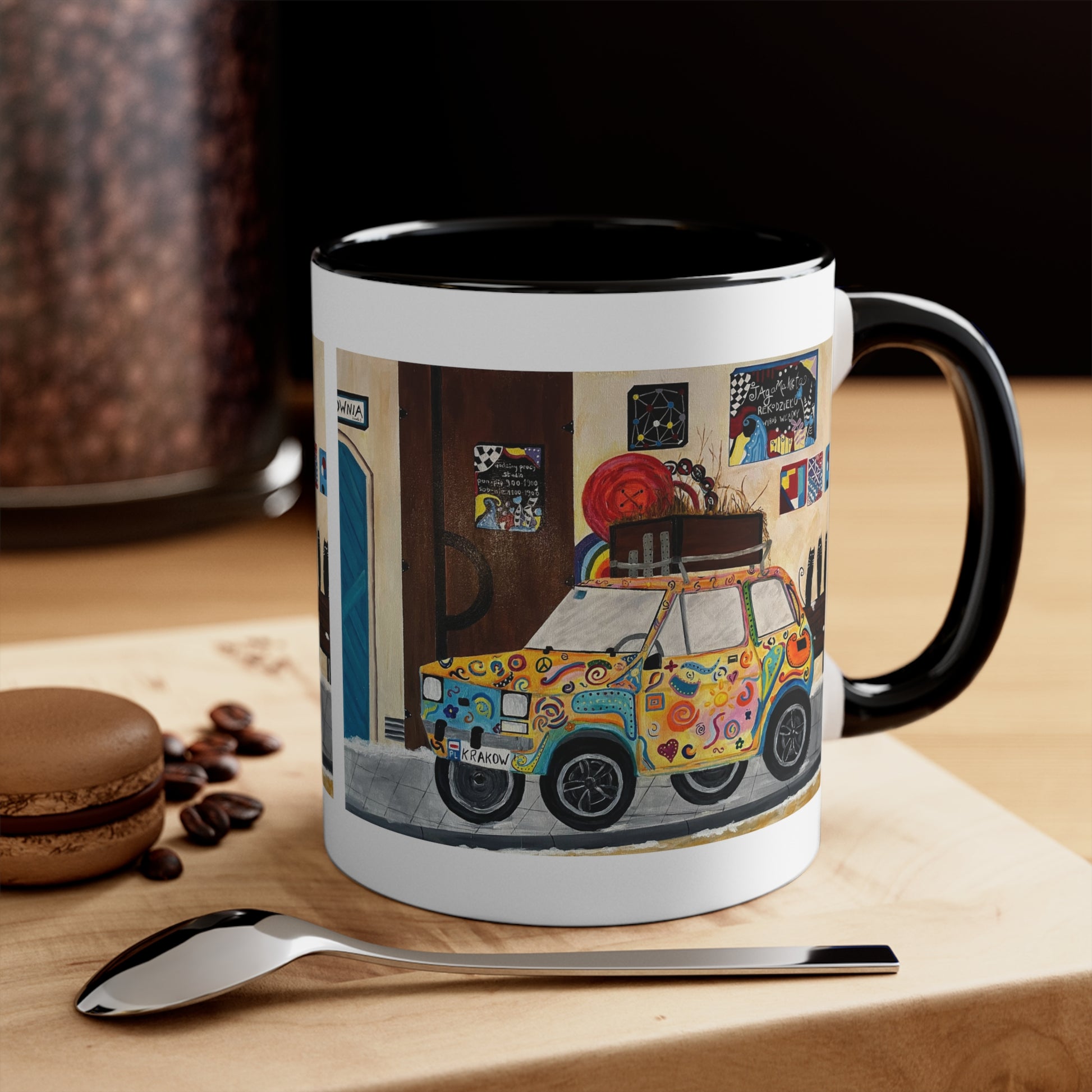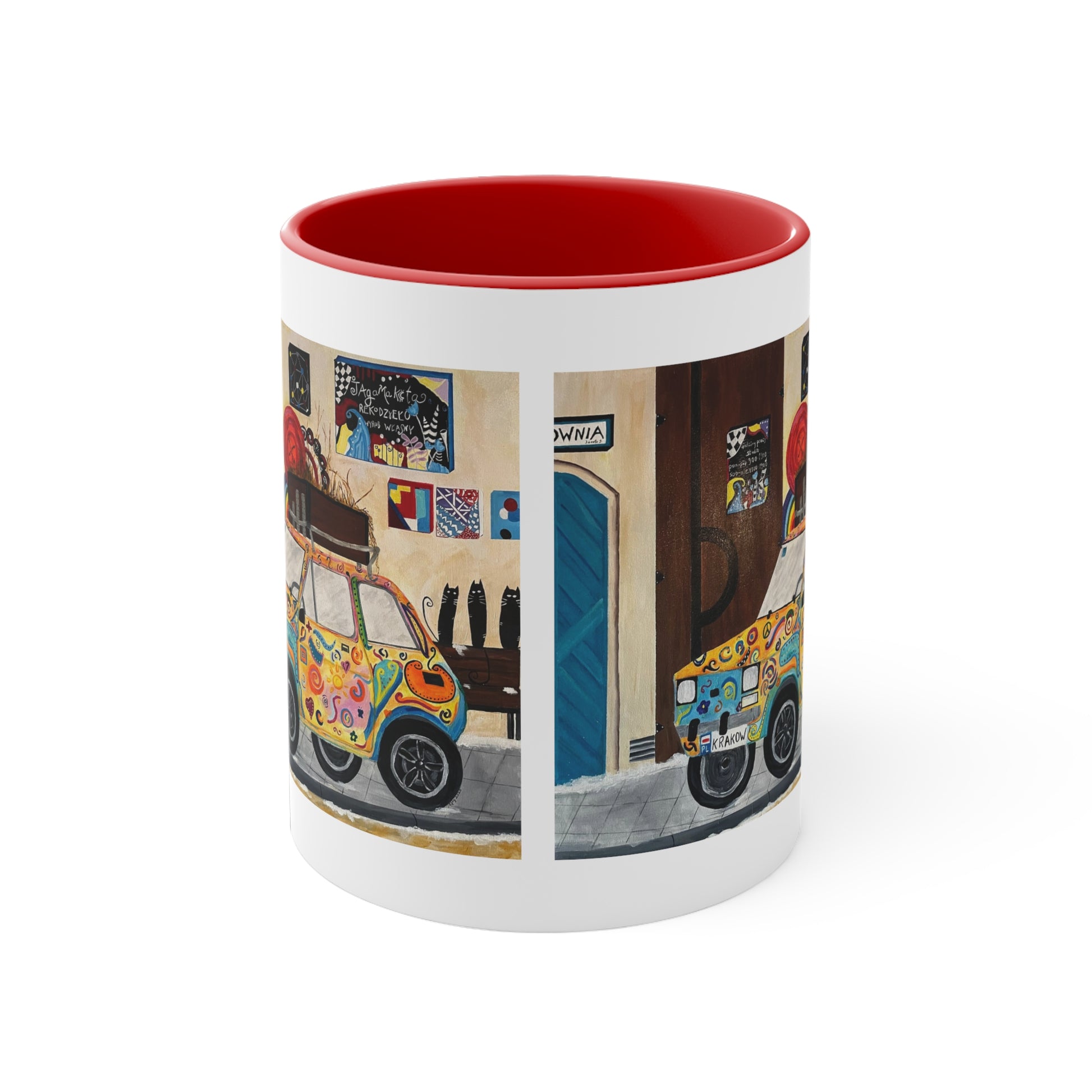 Add some color to your routine with this two-tone, custom accent coffee mug.