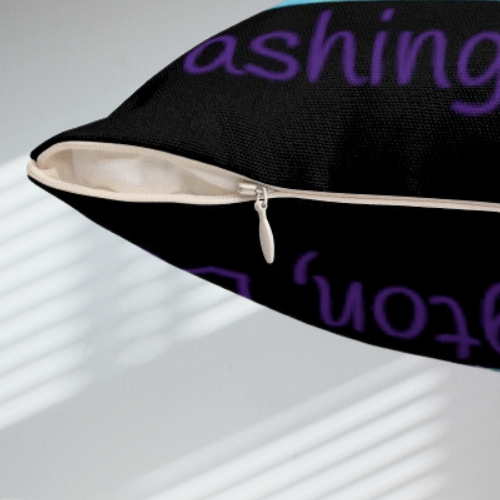 Throw Pillows: Adding a few throw pillows of the Washington, DC to your couch or bed can instantly add a pop of color and style to your space. DETAILS: .: Size: Approx 14x14,16x16,18x18 .: 100% Polyester cover .: 100% Polyester pillow included .: Fabric: Cotton / Polyester Blend - Neatly woven, sturdy material .: Edges over-sewn .: Double sided print .: Concealed zipper .: Other: Re-enforced zipper opening ends. .: Note: Pre-constructed item. Size variance +/- 0.5" .: Black pillow with print 100% Hand-Made. Made in America. CARE SUGGESTIONS: - Spot Clean or Hand Wash, do not bleach. Lay flat or hang to dry. - Touch up with warm, not hot iron, preferably over a slightly damp press cloth, if needed. FEEDBACK or Ask for alternative color: seejoycreative@gmail.com