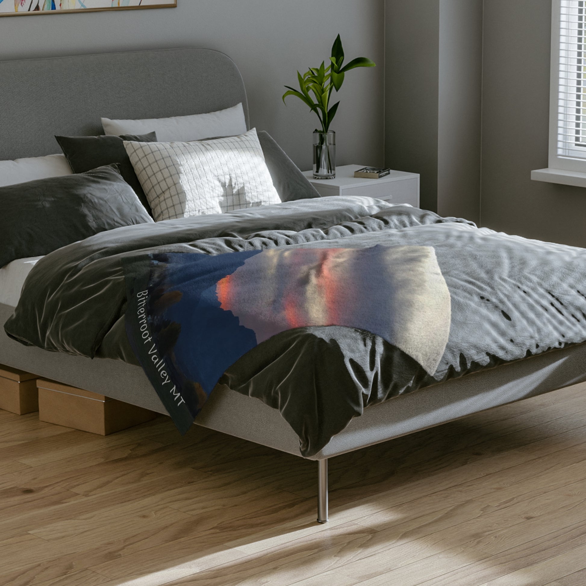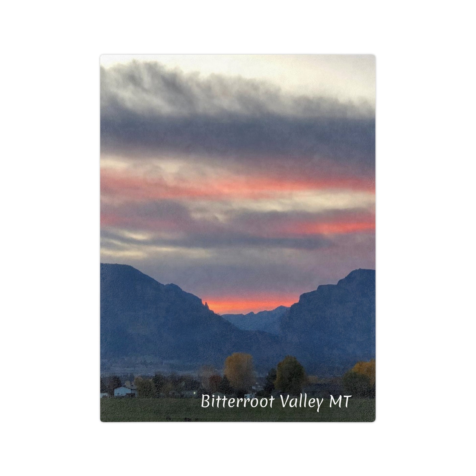 Sunset in Bitterroot Valley Montana Velveteen Minky Blanket